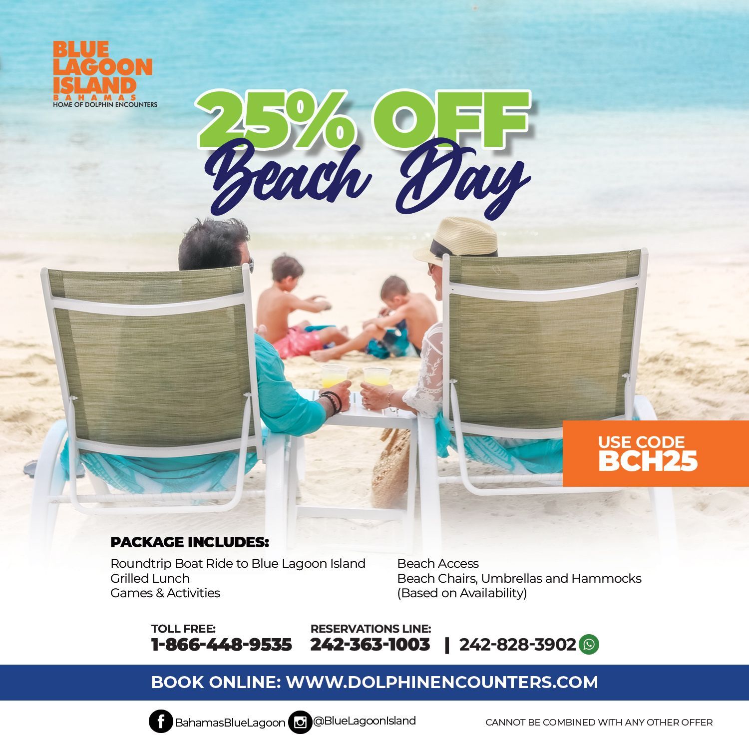 Experience a tranquil retreat with the Adults Only Beach Day featuring private beaches, unlimited Bahama Mamas, attentive service, and a delicious Bahamian-inspired buffet.